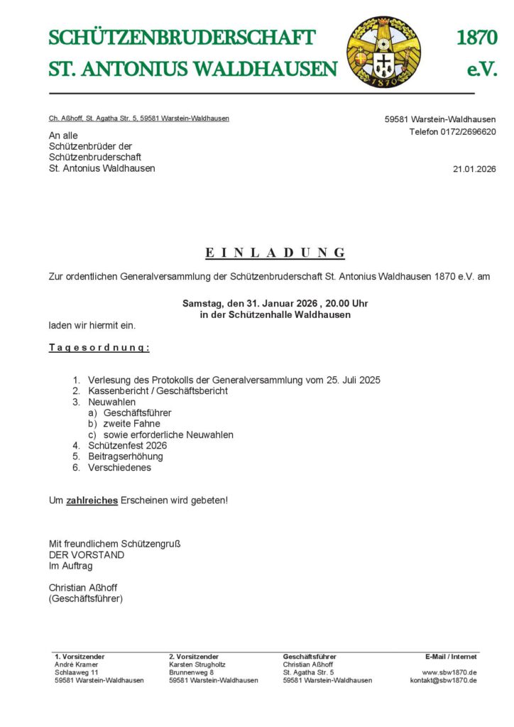 Einladung zur Generalversammlung 2026